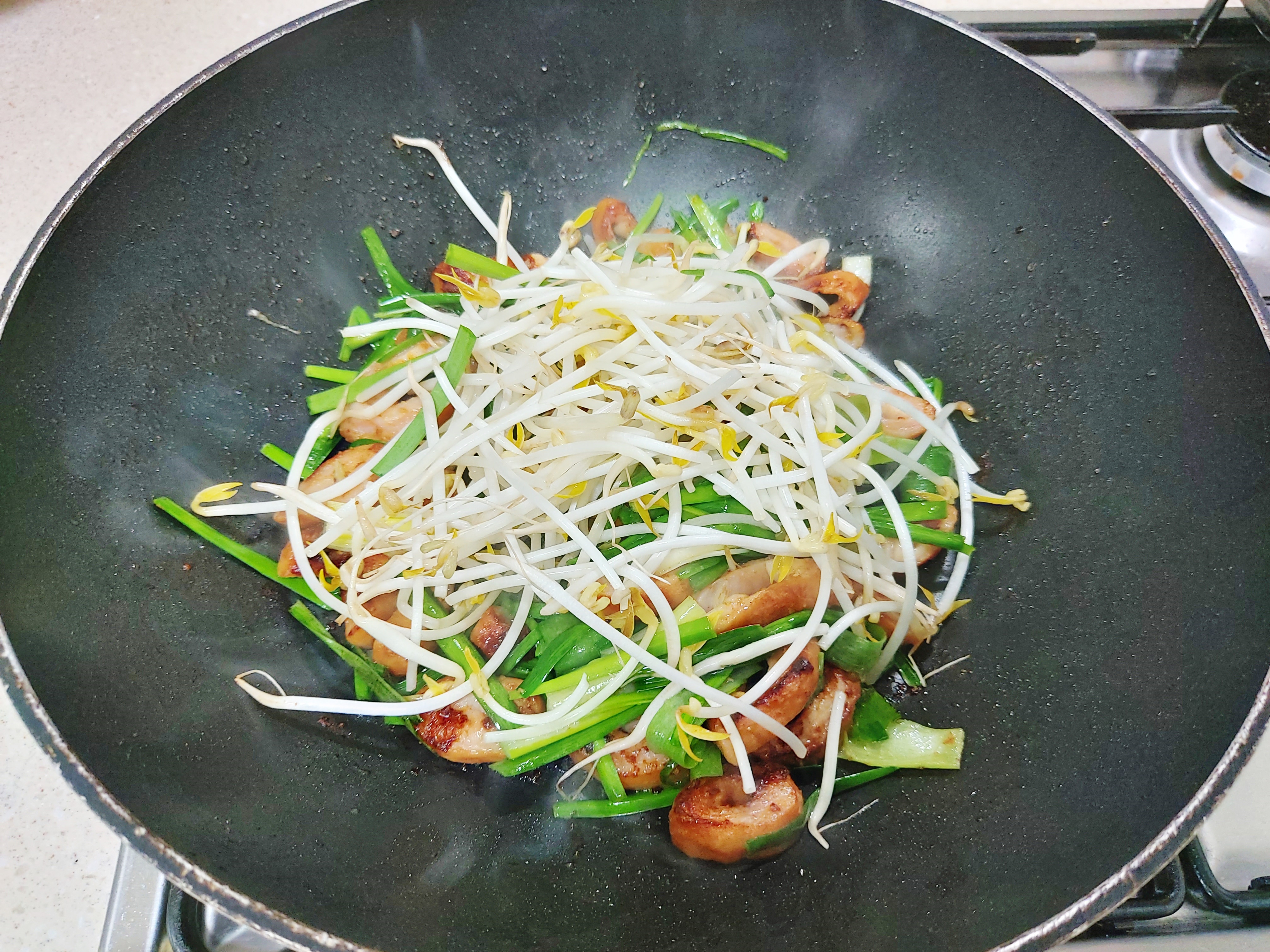 달구지 돼지막창을 어느정도 구워주면 부추를 먼저 놓고 볶아주고 그다음 숙주를 넣어 줍니다. 돼지막창에서 나오는 기름에 부추와 숙주가 볶아지는게 아주 맛이 좋습니다.