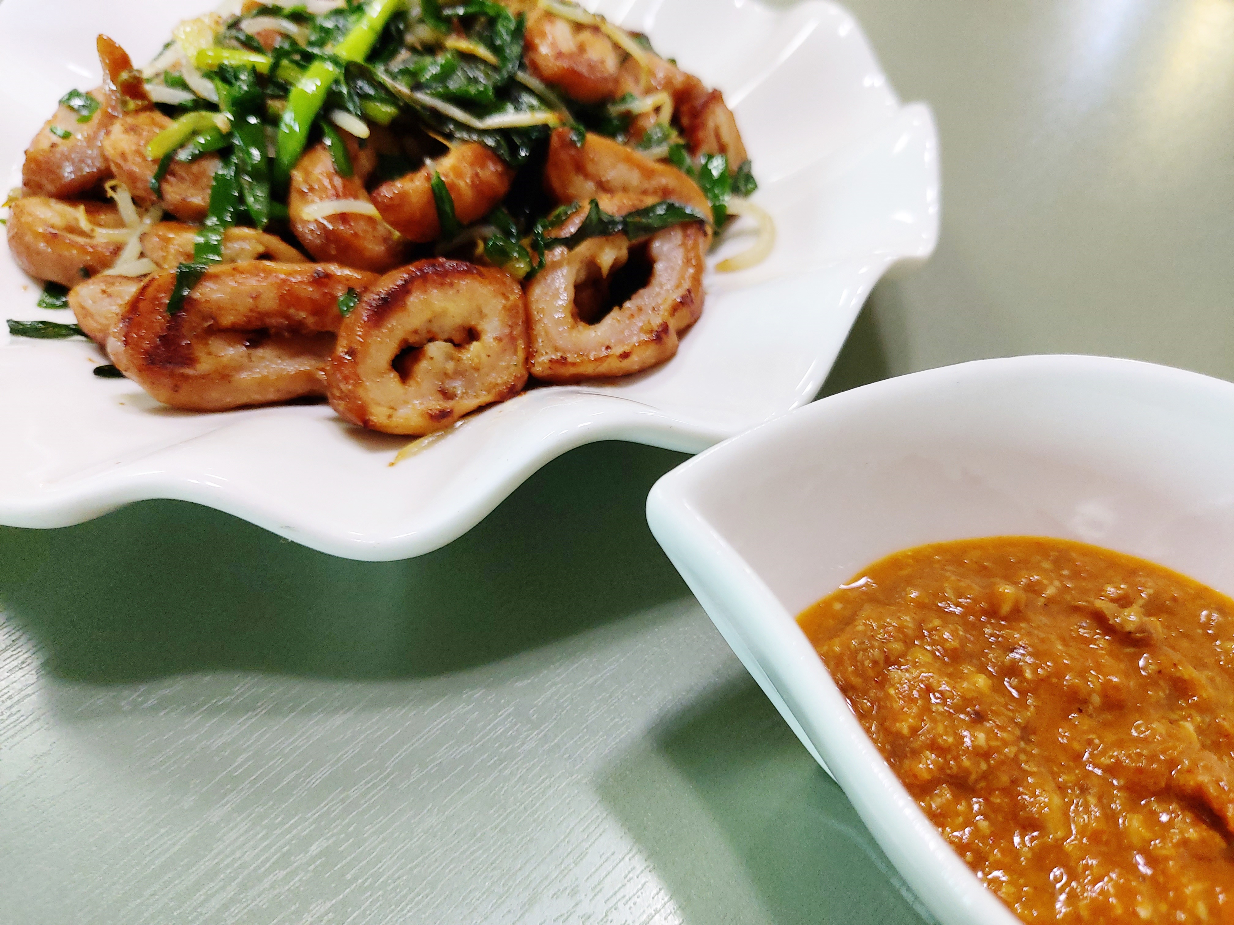 쫄깃쫄깃하고 고소한 맛의 돼지막창 입니다. 숙주와 부추를 넣고 볶아준게 아주 신의한수 입니다. 돼지기름에 볶아진 야채 너무 맛있고 특히 중독성 있는 저 막장소스 캬~~