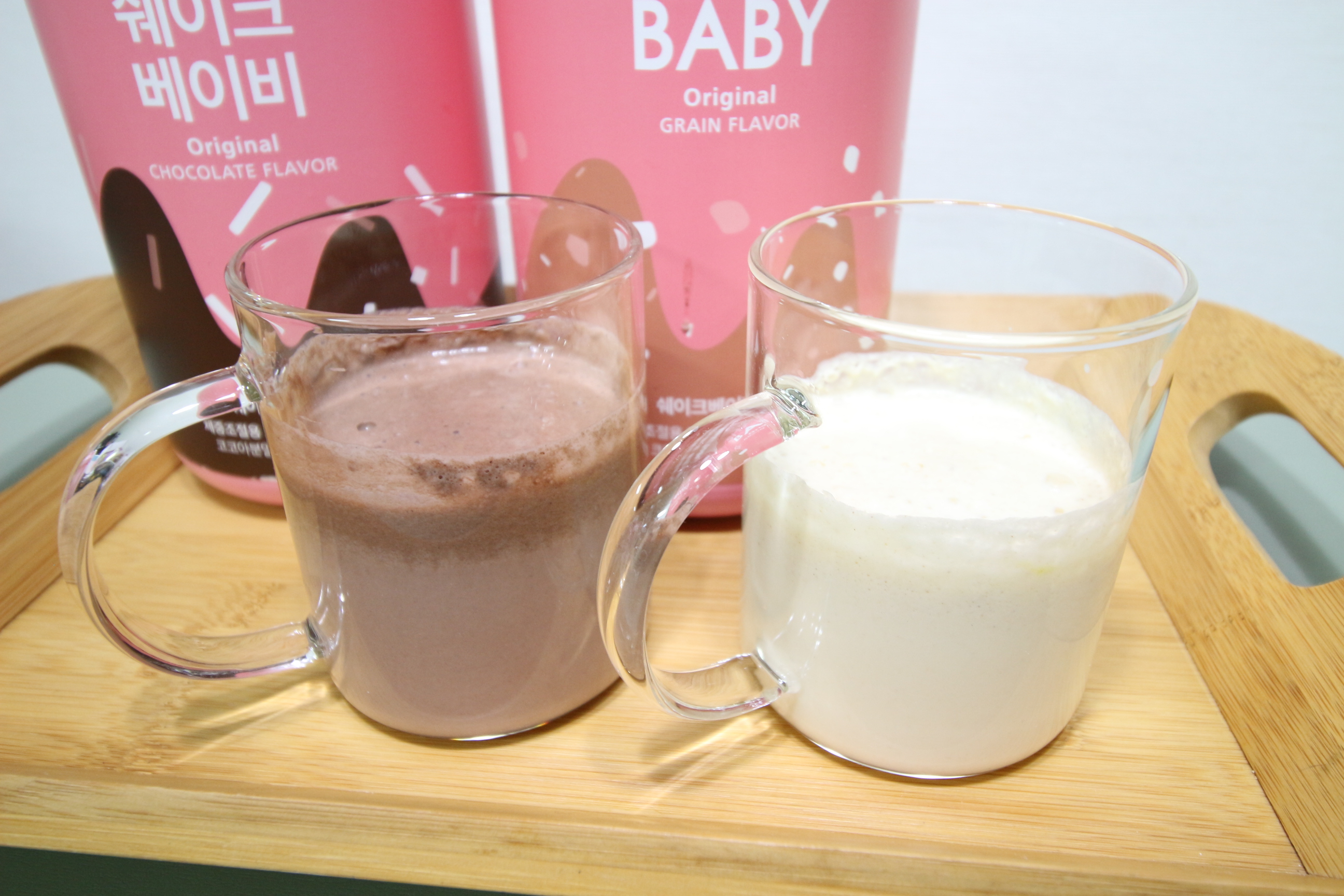 쉐이크 베이비 딸기,초코,곡물,말차등의 다양한 맛이 있습니다.