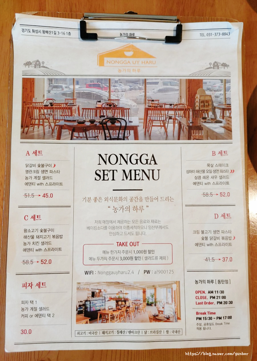 살짝 기다리면서 찍어본 동탄 농가의하루 메뉴입니다.