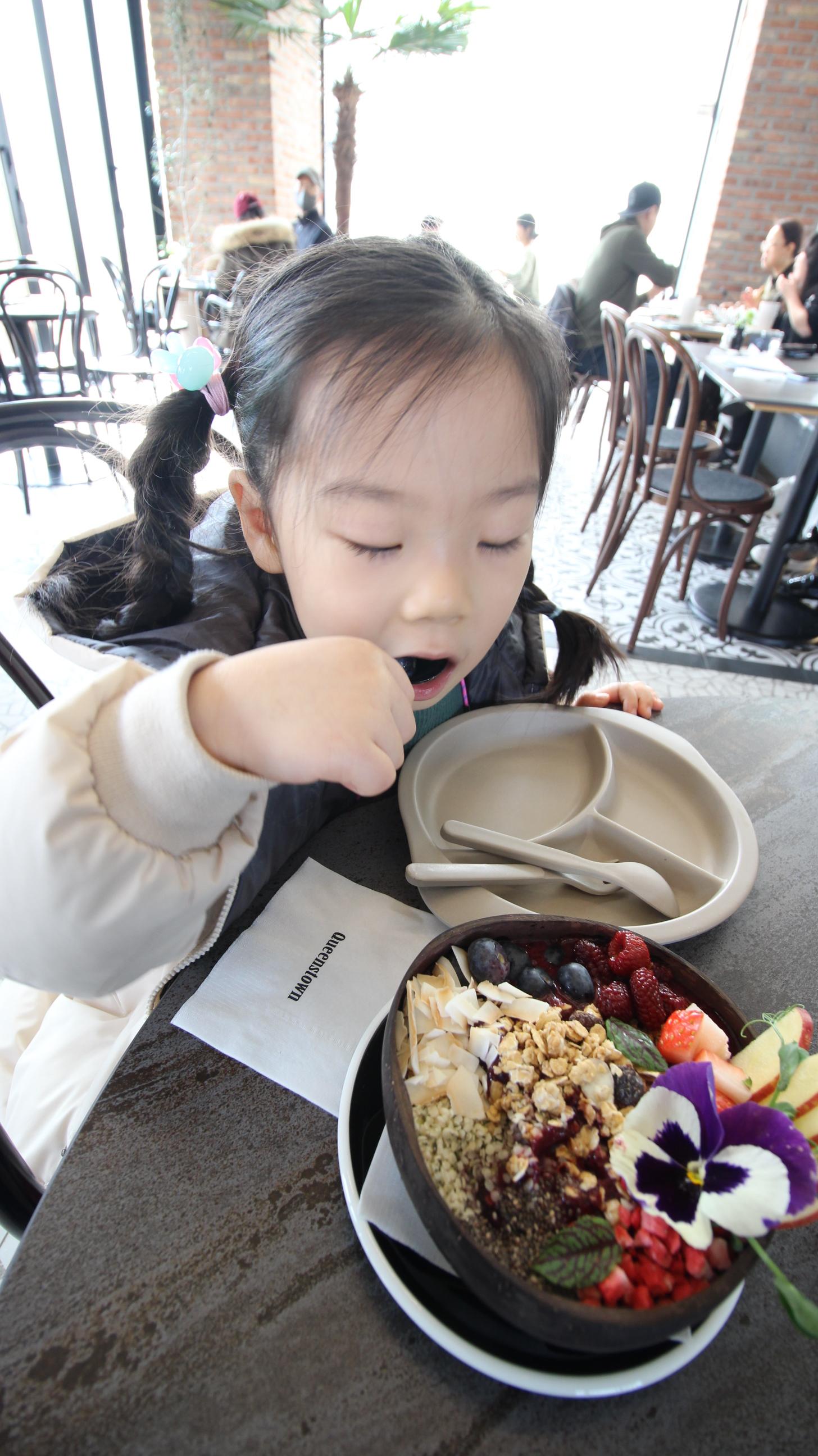 또율이는 배고프다고해서 집에서 밥을 먹이고 갔는데 아사이볼이 맛있다며 너무 잘먹었습니다.