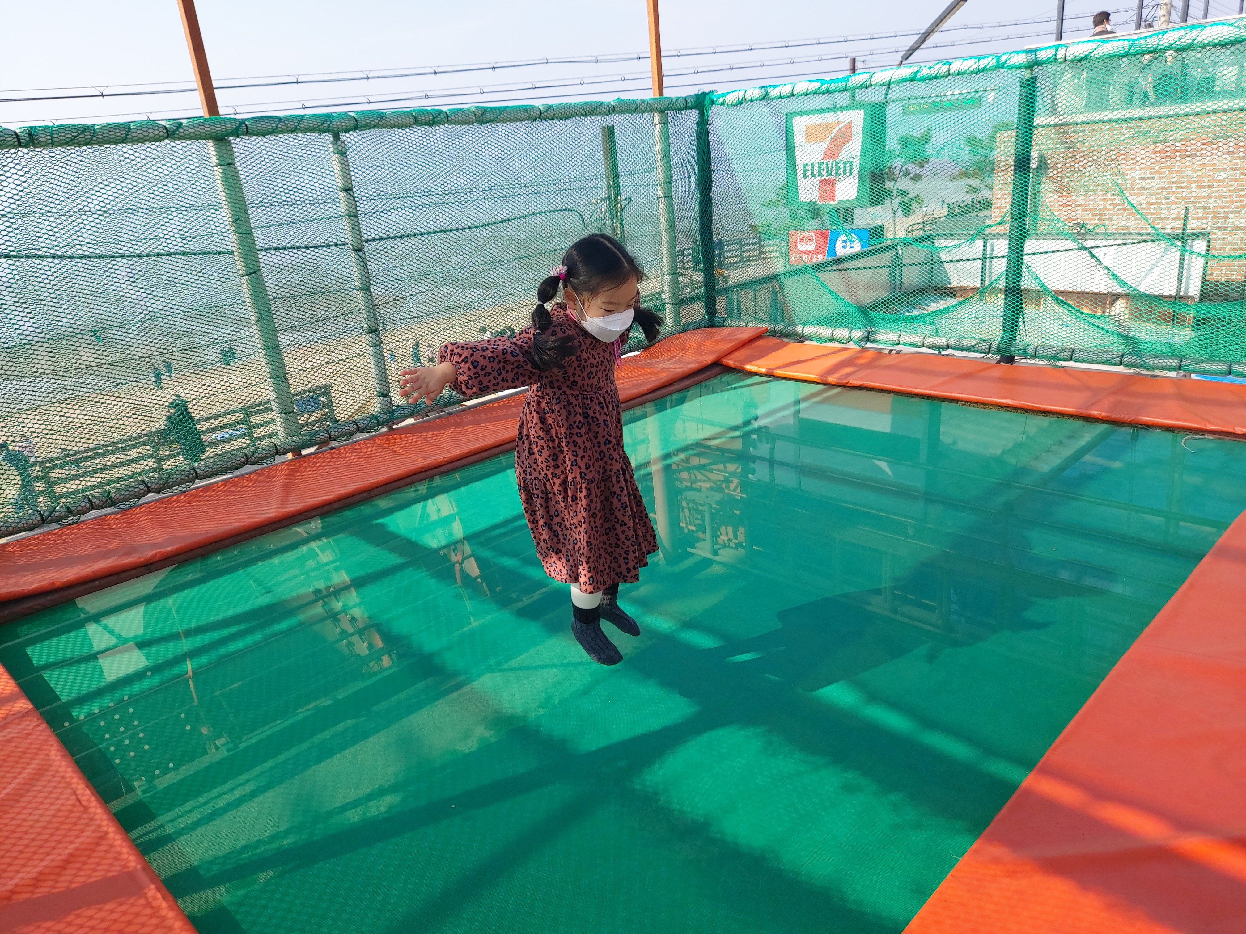 계단으로 올라가니 바이킹이 보이고 그 옆에 방방이 있었습니다.