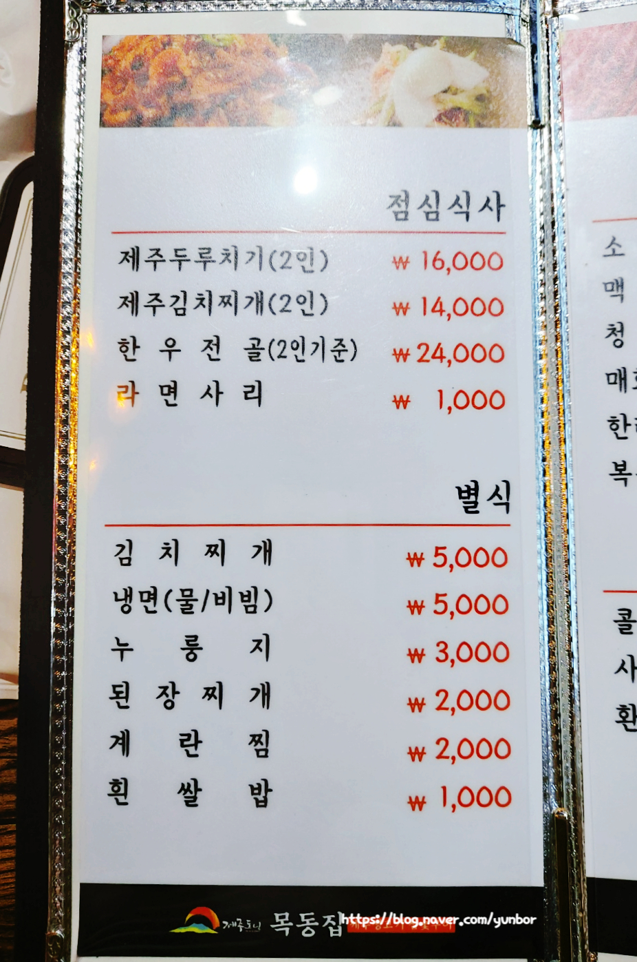 동탄 맛있는 고기집 목동집의 메뉴입니다.