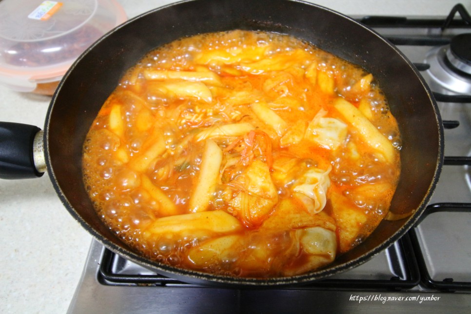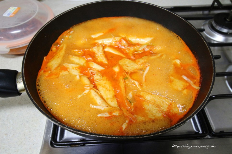 넓은 냄비위에 떡볶이 양념육수를 넣고 끓으면