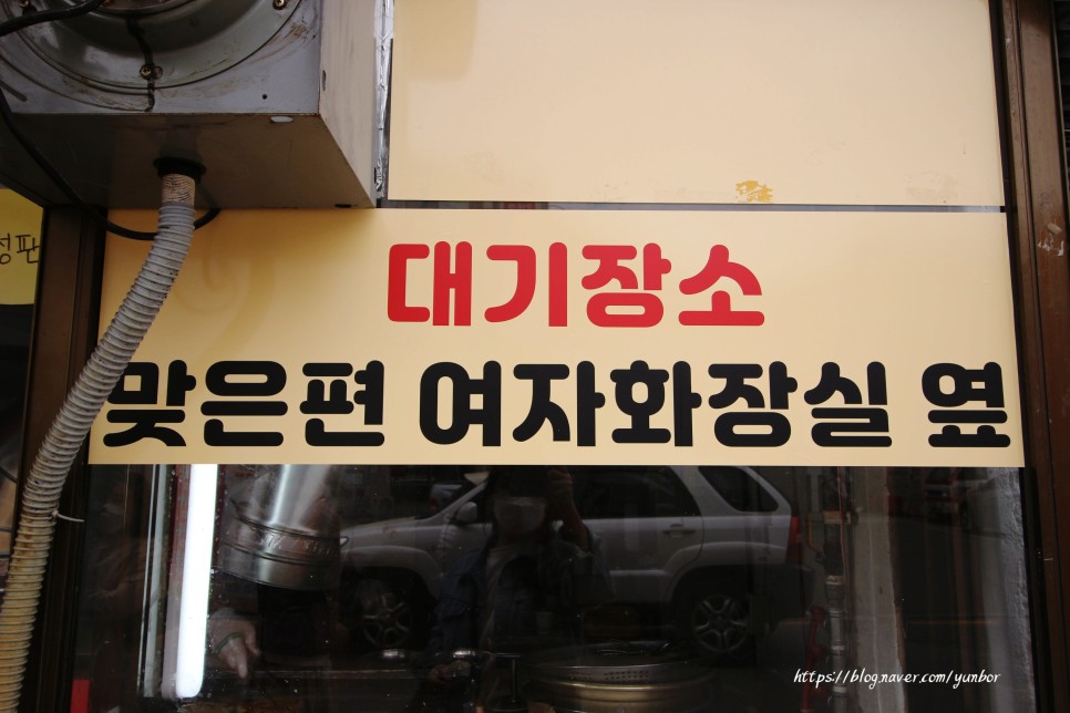 대기장소는 맞은편 여자화장실 옆 입니다.
