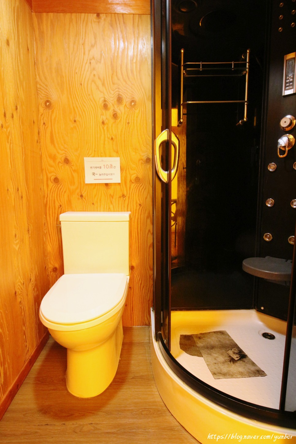 전 객실 내부 화장실과 샤워를 즐길 수 있는 샤워부스가 있어서 좋습니다.