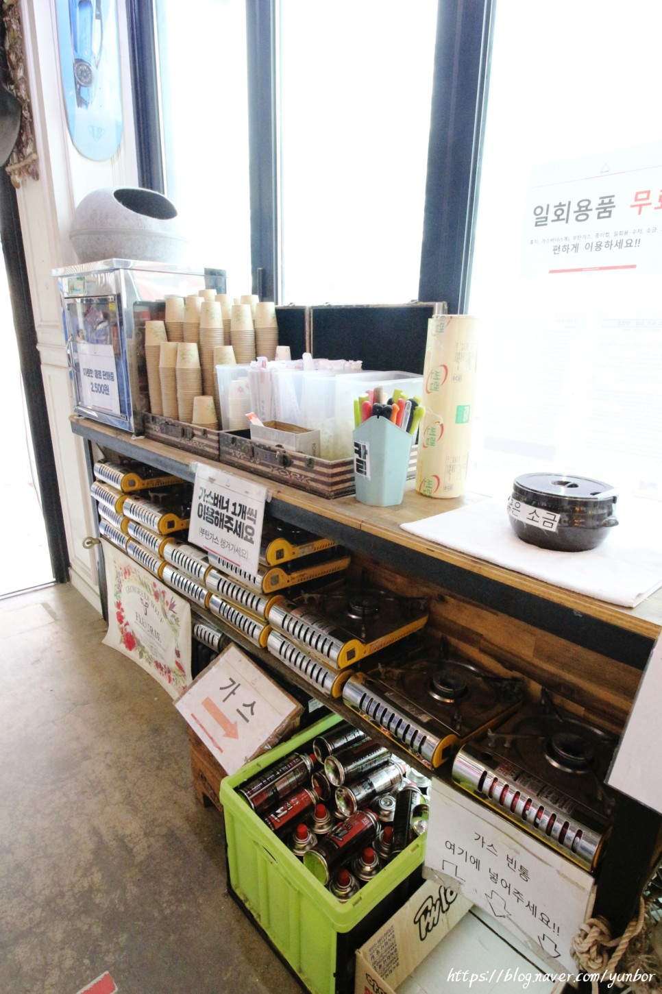 그리고 관리동에는 가스버너, 컵, 일회용품, 냄비, 접시, 그릇, 후라이팬 등등