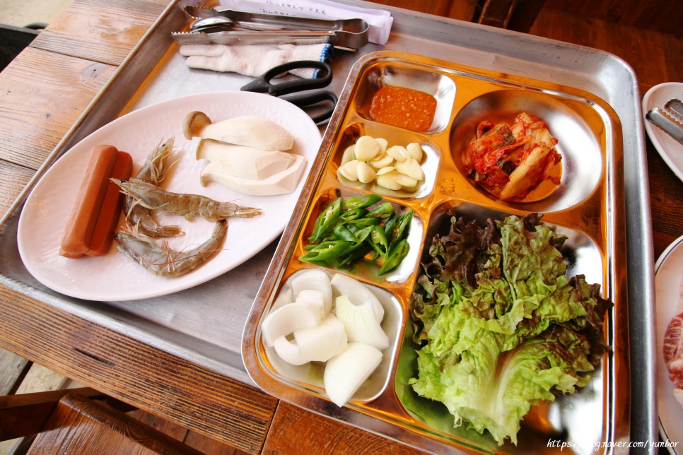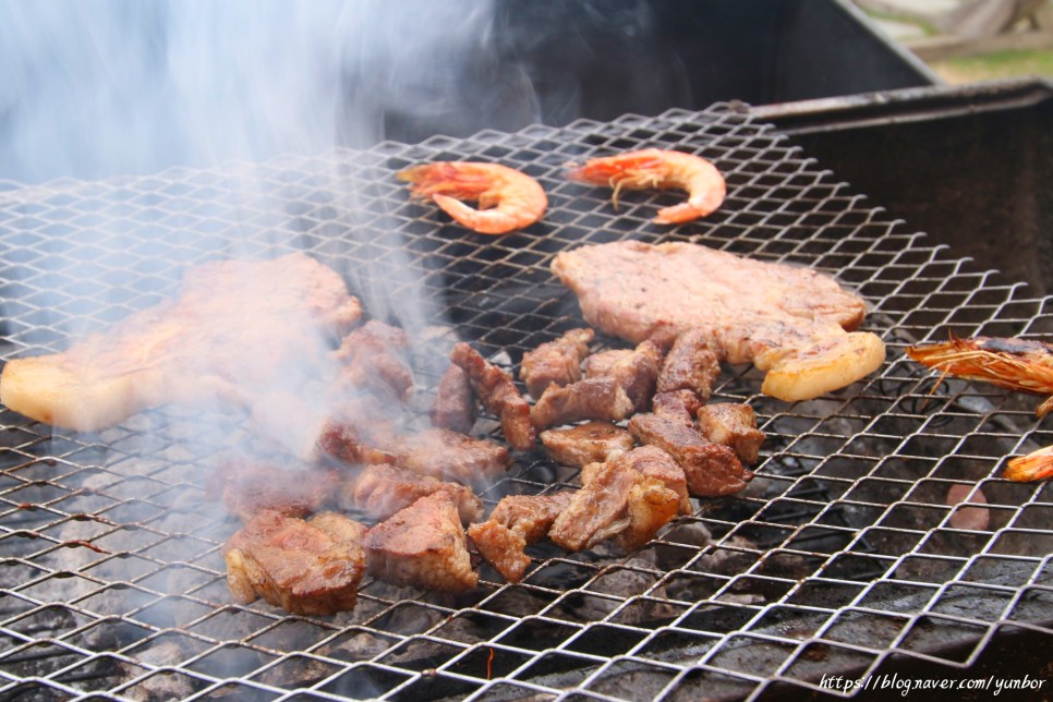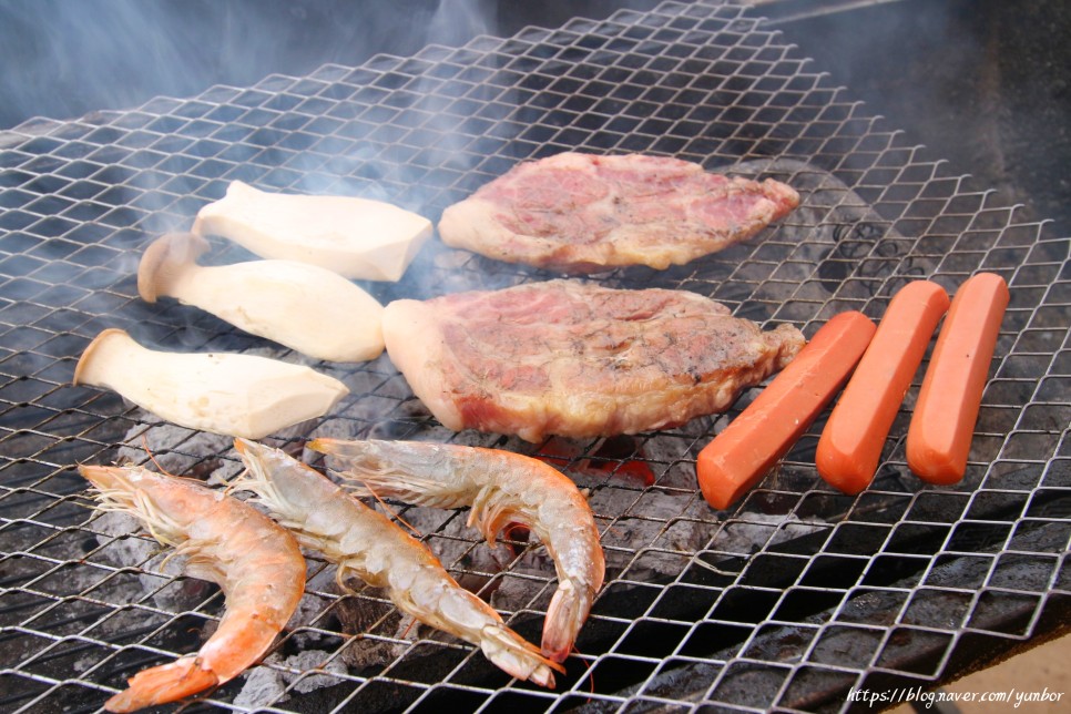 상차림에 있는 새우,버섯, 소세지도 맛있게 구워먹었습니다.
