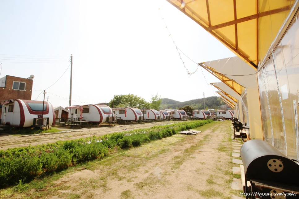 글램핑장 주차장 반대쪽으로 가니 카라반도 보입니다.