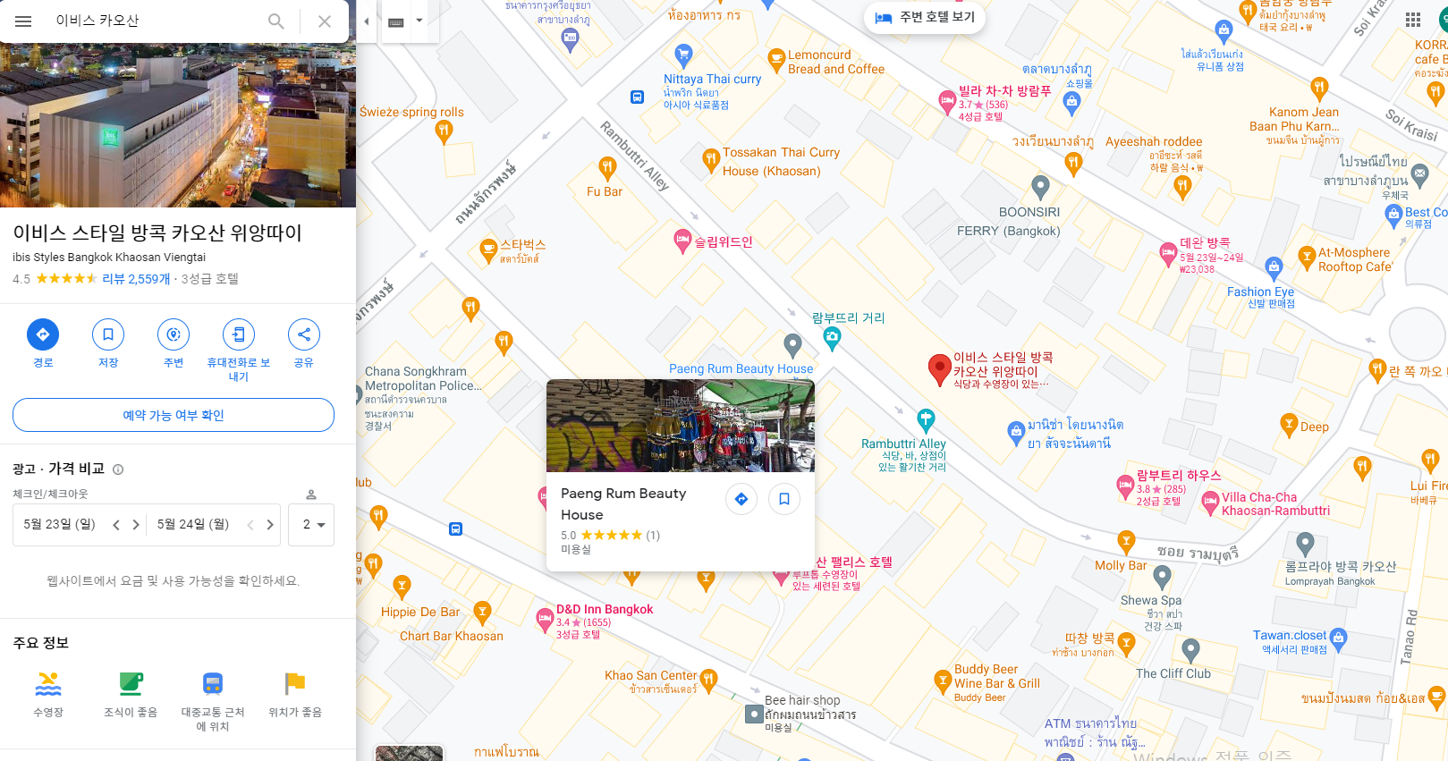 이비스 카오산 현재 구글 평점이 4.5점으로 좋네요.