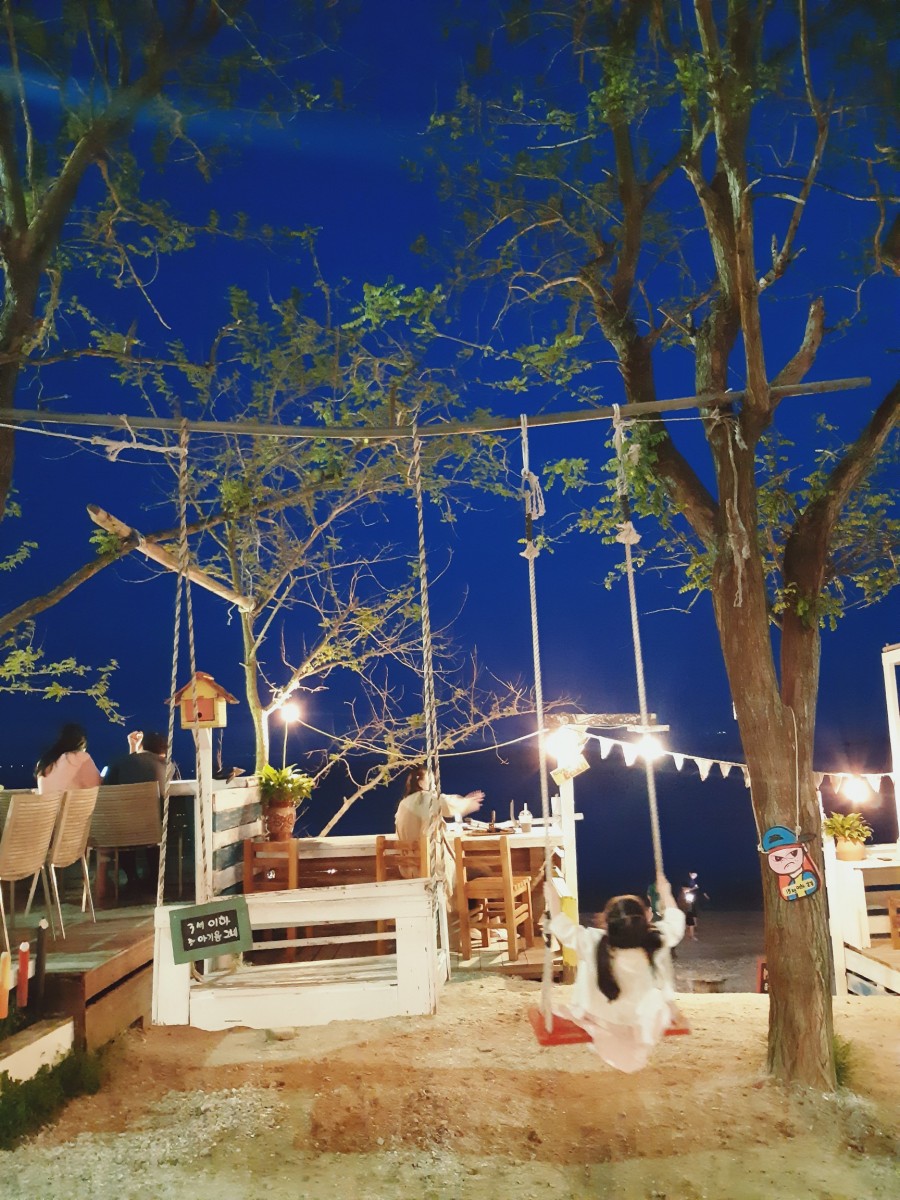 돗자리 사용도 가능하고 사진찍기도 예쁘고 해먹과 그네가 있어서 아이가 좋아할만한 곳, 선재도 뻘다방으로 정했다.