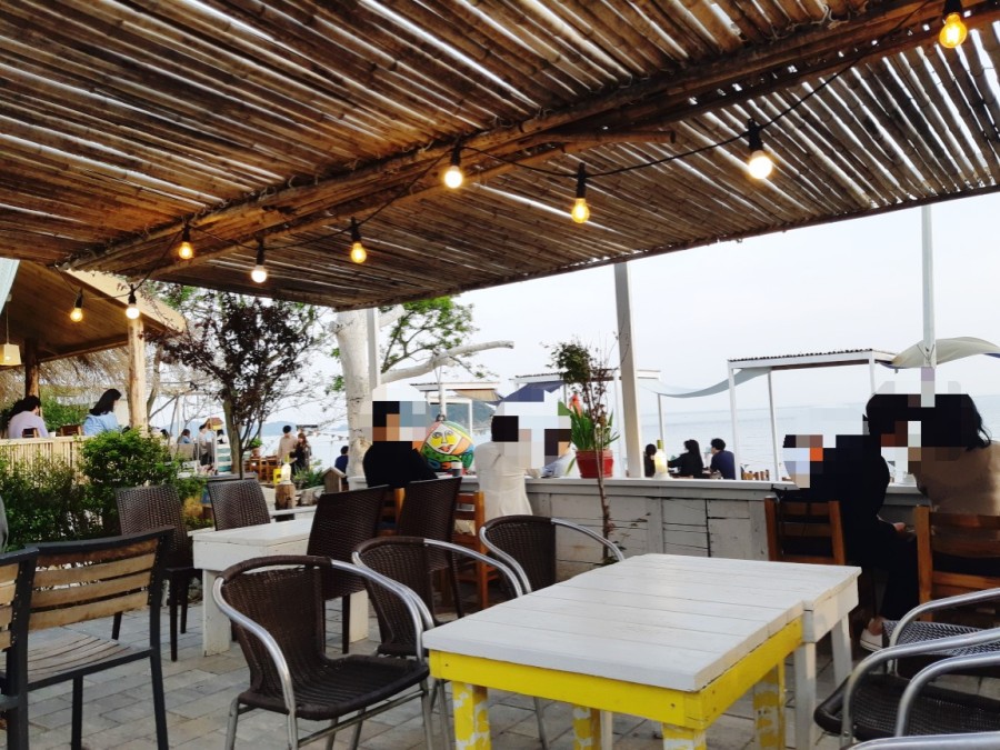 우리는 바다 앞 자리가 없어서 뻘다방 옆쪽 테이블에 자리를 잡았다