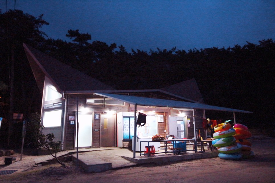 충남 가볼만한 곳 백리포 해수욕장 주차장입구에서 있는 하나뿐인 매점에가면 파라솔,튜브바람넣기도 가능하고