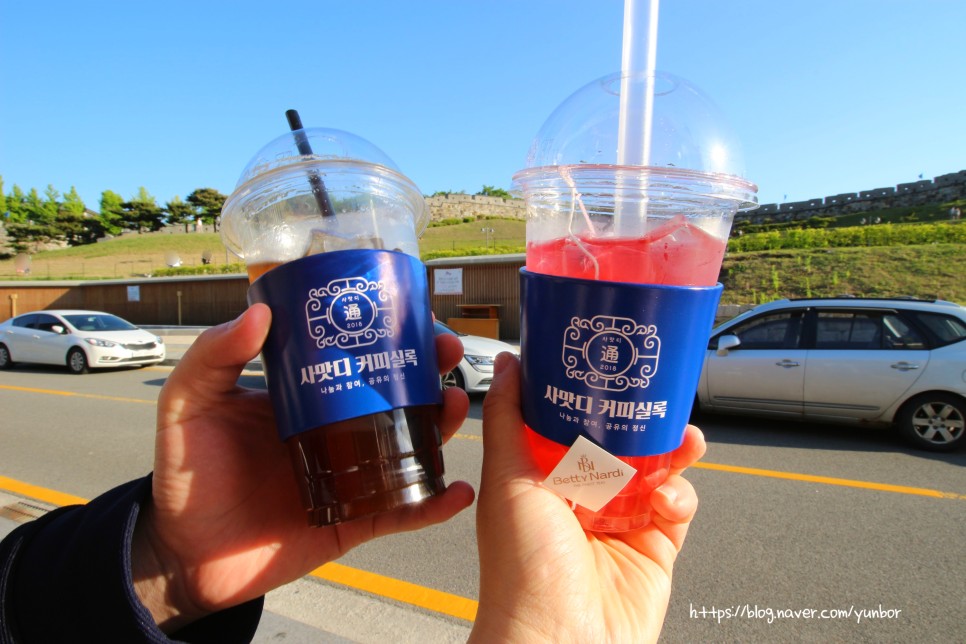 다시 주차장으로 되돌아가는길에 커피와 시원한 음료를 사서 마셨습니다.