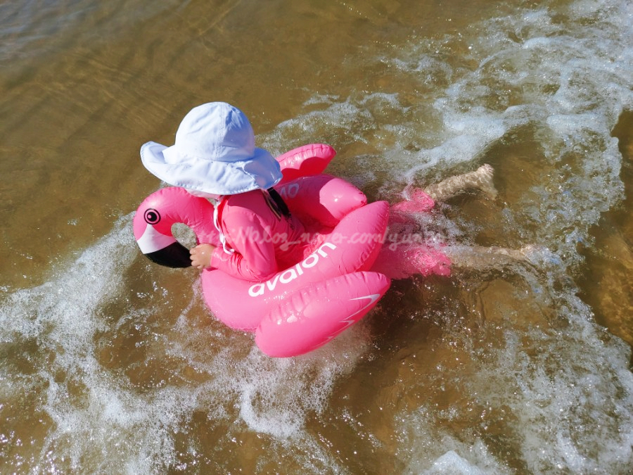 파도타는 재미를 잘 몰랐던 또율이가 이날은 파도타는 재미에 빠져서 너무 잘 놀았습니다.