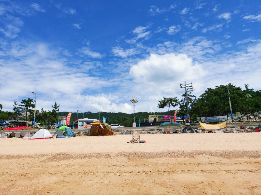 태안 만리포 해수욕장 텐트, 개인파라솔, 타프등을 이용하시는 분들은 적당한 자리에 설치하면 됩니다~
