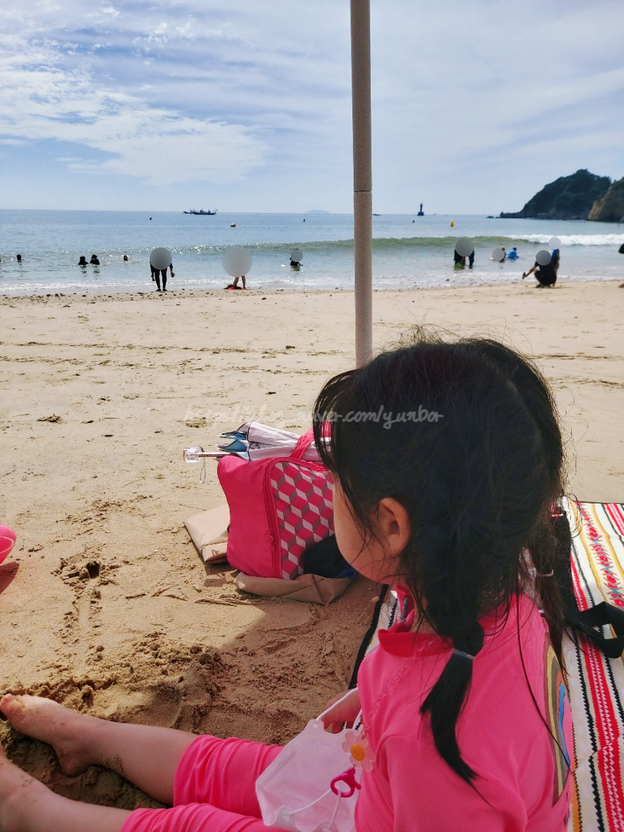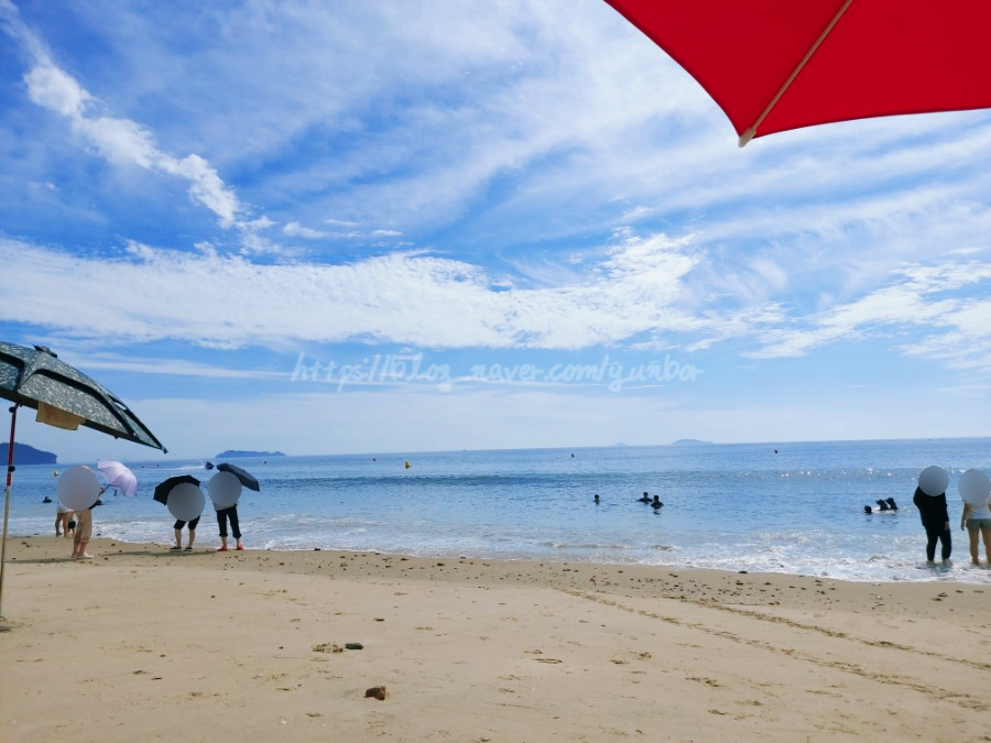 저희 가족은 사람이 많이 몰려있지 않은 쪽으로 가려고 해수욕장을 한바퀴 쭉 돌아봤습니다.