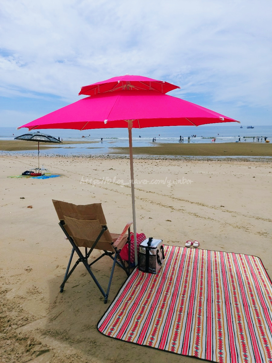 일주일전 태안 만리포 해수욕장에 너무 준비없이 가서 이날은 파라솔과 방수돗자리 등등