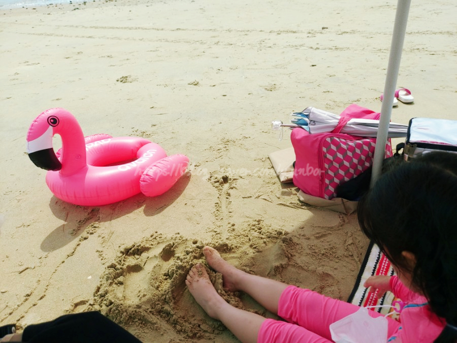 주차장과 화장실이 가깝고 사람도 적은 해변 끝쪽에서 놀면 좋을 것 같아서