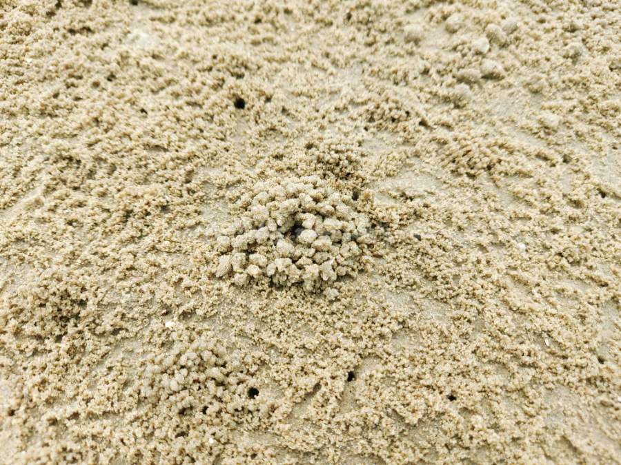 또율이와 티비에서 봤던 갯벌 모래똥도 보고 조개도 구경했습니다.