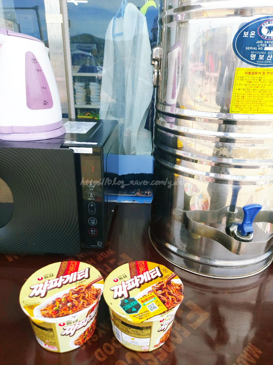 배가 슬슬 고파서 저희가 주차한 주차장 옆에 있는 편의점에서 컵라면과 물을 사먹었습니다.