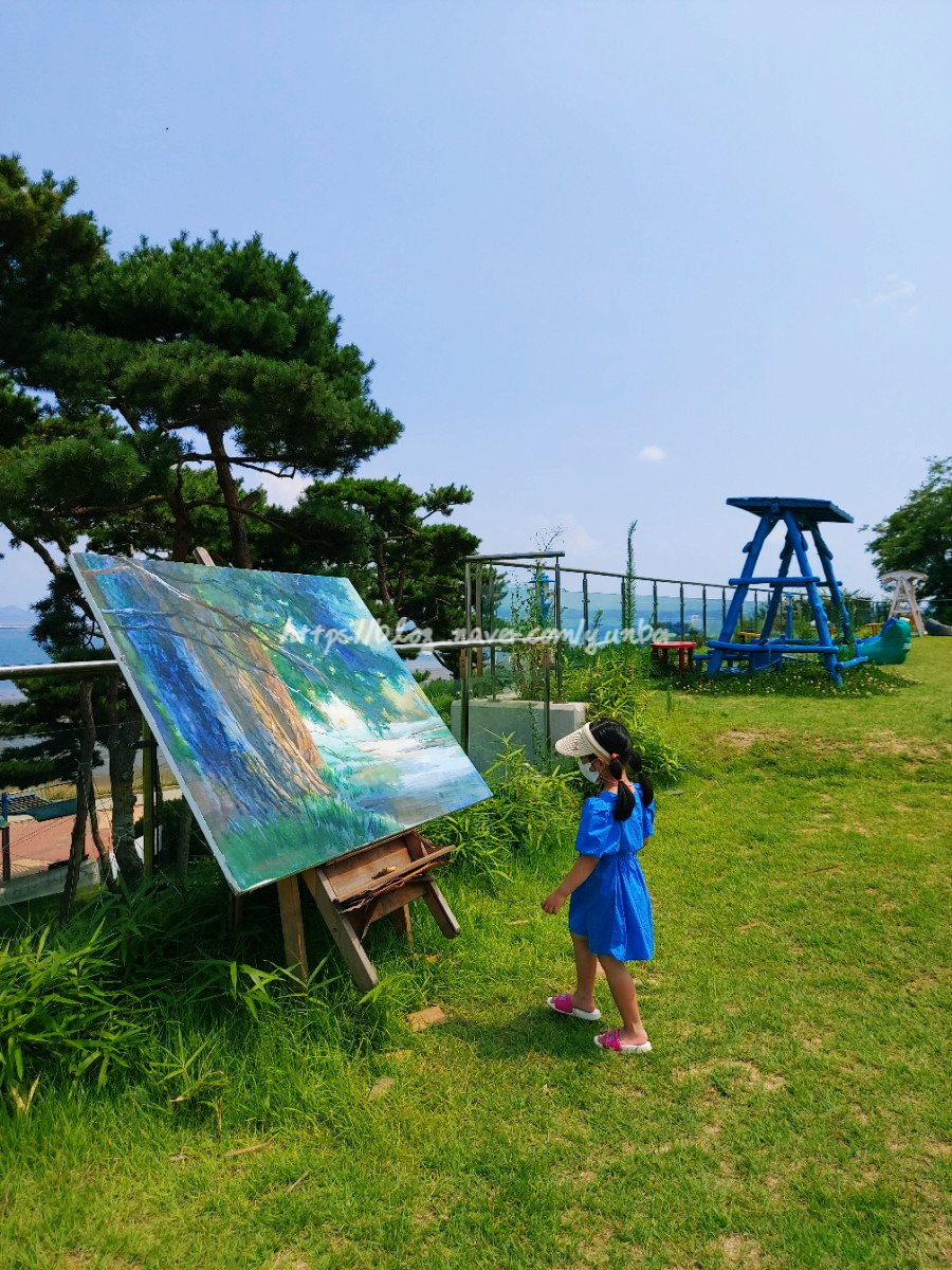 더운 날씨 때문에 땀이 줄줄 흘러도 바다뷰도 멋지고 카페도 예뻐서 기분 좋게 잠시 쉬었다 올 수 있었던