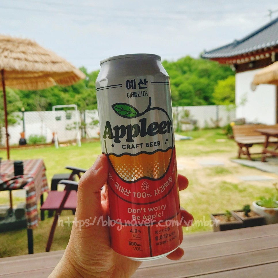 펜션에 도착해서 짐정리 후 예산시장에서 사온 사과맥주 애플리어와 함께
