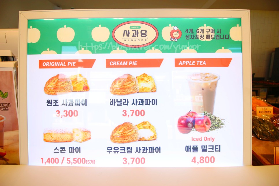 그래서 밀크티 한잔 더 먹고 사과파이를 박스로 포장했습니다~