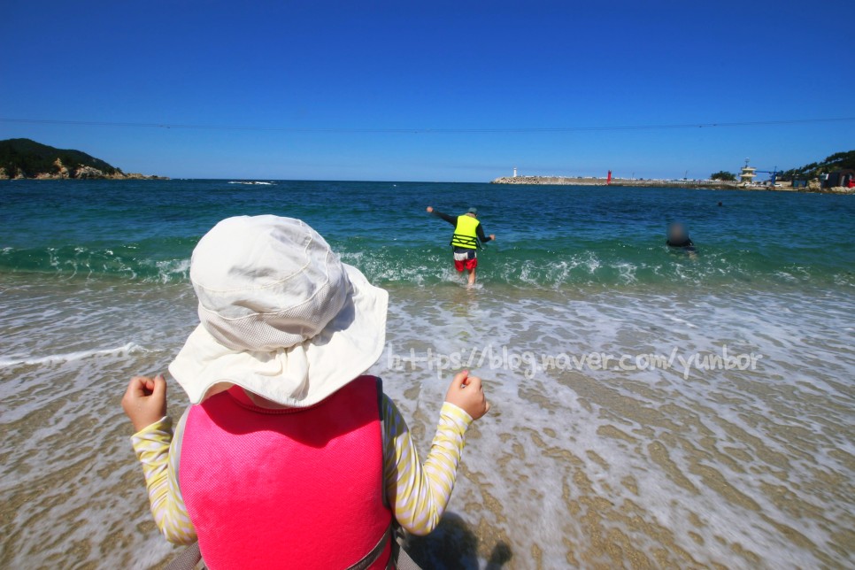 장호해수욕장은 넓지 않고 아이와 한가롭게 놀기 좋았습니다.