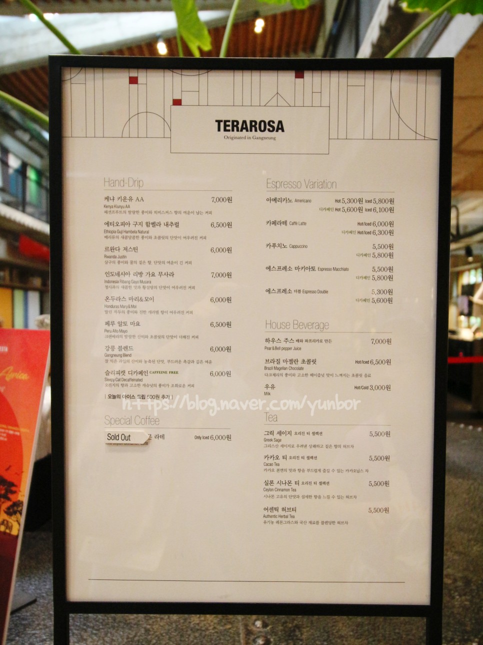 테라로사 메뉴입니다.