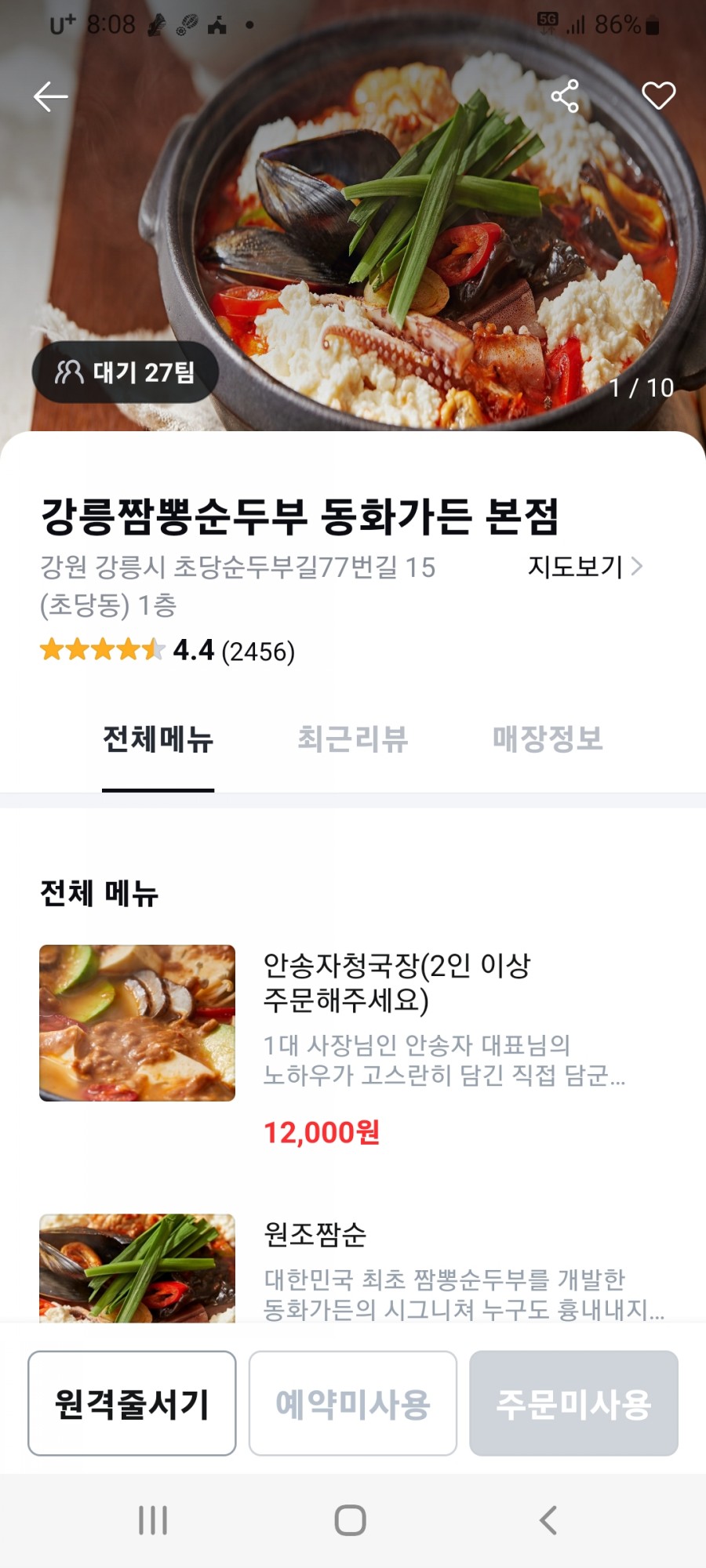 원격줄서기를 할 수 있어서 조금 더 이용하기 편리해졌습니다.