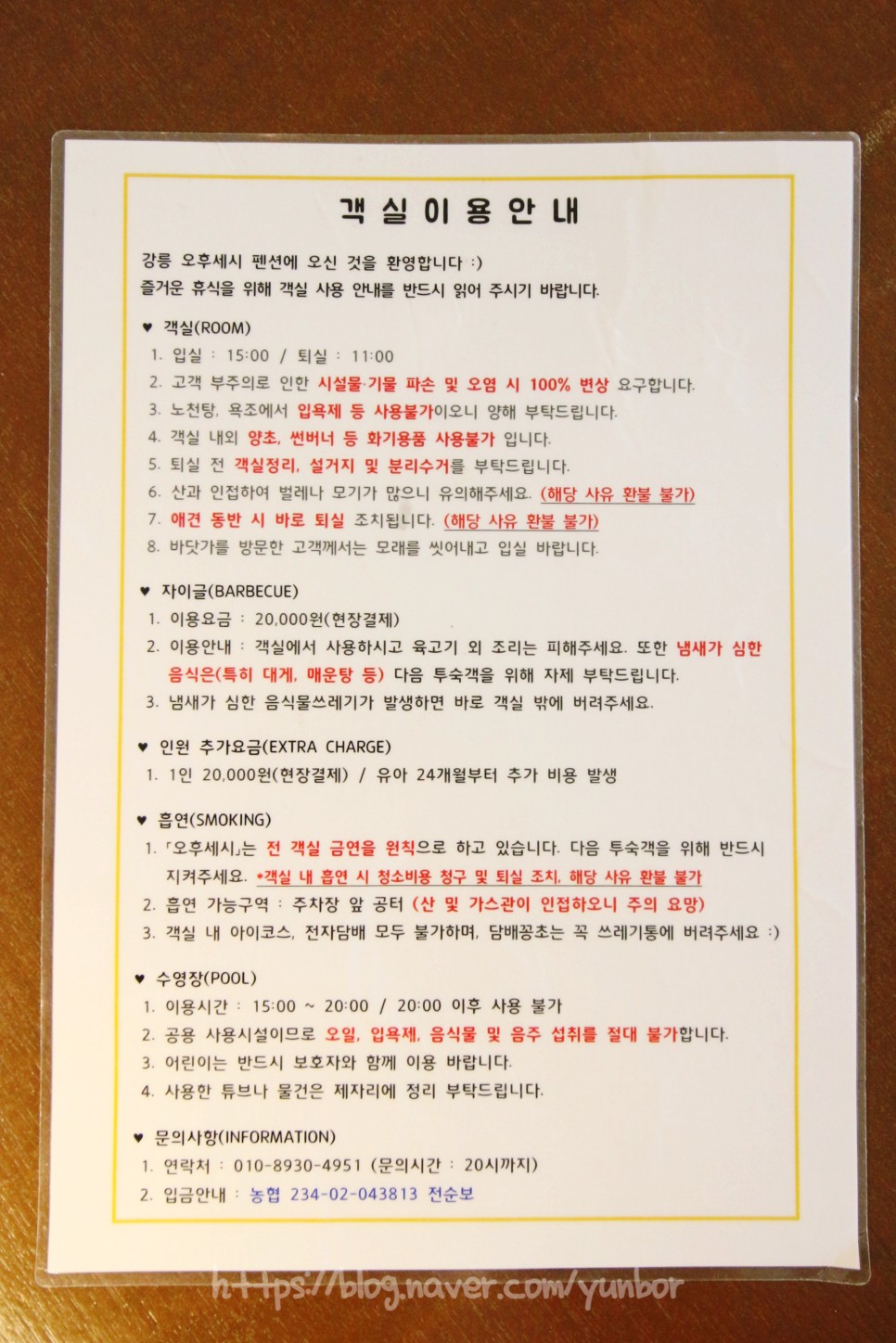 그리고 객실이용안내서가 있어서