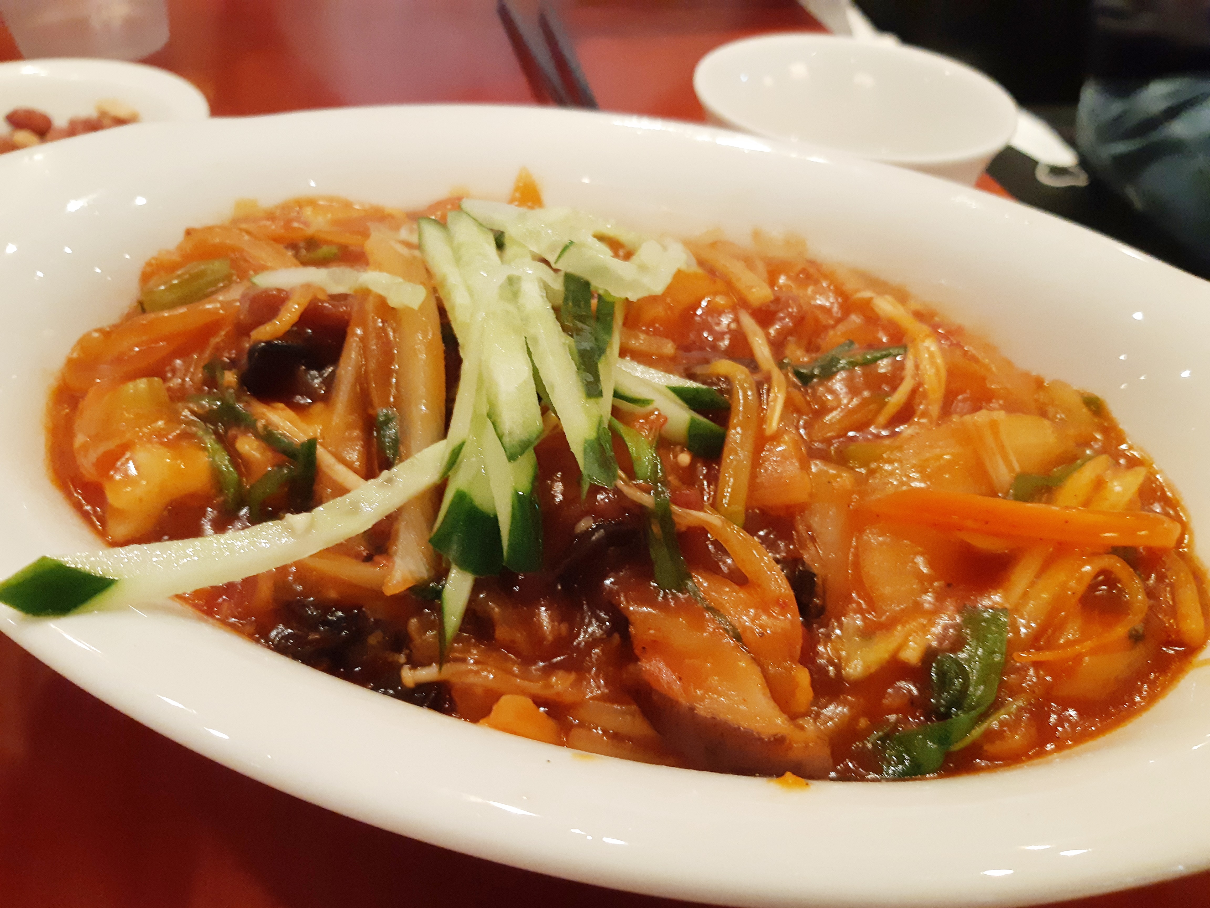 보통 탕수육이 소스가 부워져 나오면 눅지기 마련인데 마지막까지 눅지지 않았고 탄맛 바로전에 그 단맛이 나면서 겉은 끝까지 바삭하고 안에 고기는 정말 부드러웠습니다.