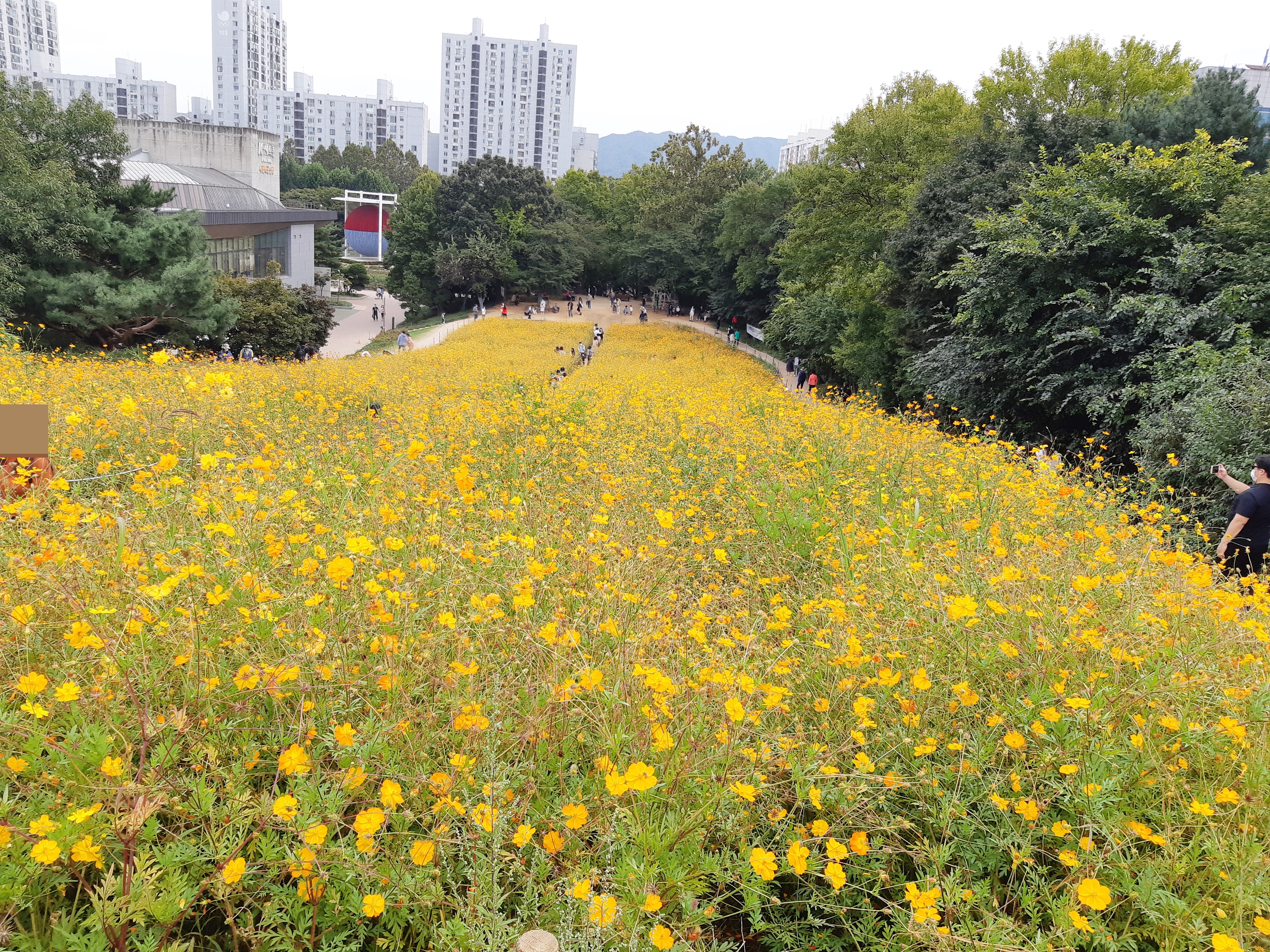 저는 난생처음보는 황화 코스모스 입니다. 그것도 만발되어 있으니 기분이 아주 좋습니다. 핑크뮬리는 평택바람새마을이 가장 좋았고 코스모스는 여기 올림픽공원 들꽃마루가 가장 좋았습니다. 그리고 시기적으로도 잘 맞춘건지 색이 정말 좋았습니다.