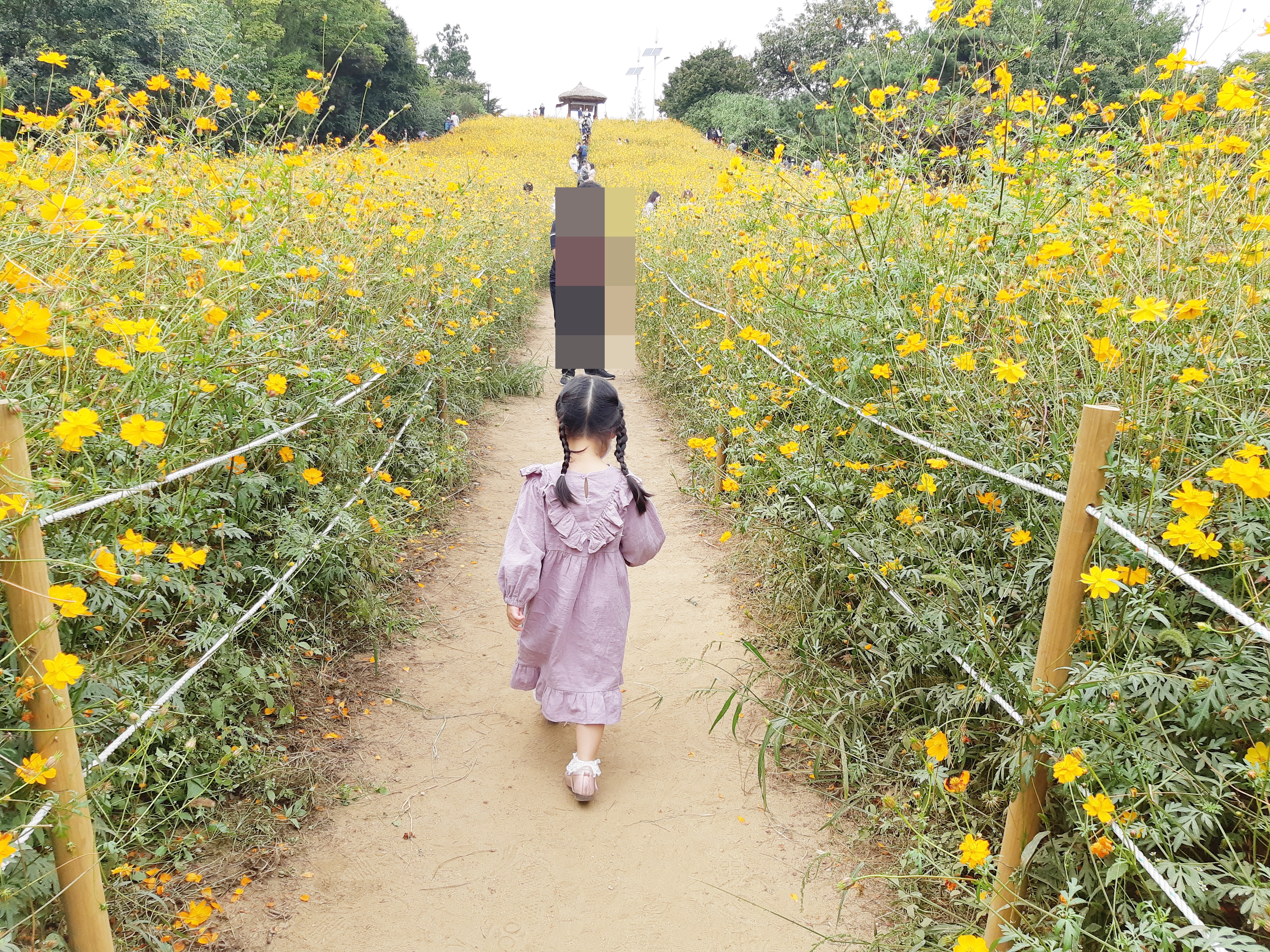 당연히 포즈부자인 저희 딸래미가 포즈를 취해주십니다. 구석구석 사이사이 들어가서 사진을 찍고 싶지만 많은분들이 계셔서 그렇게 하지는 못하고 빠르게 황화 코스모스로 넘어갑니다.