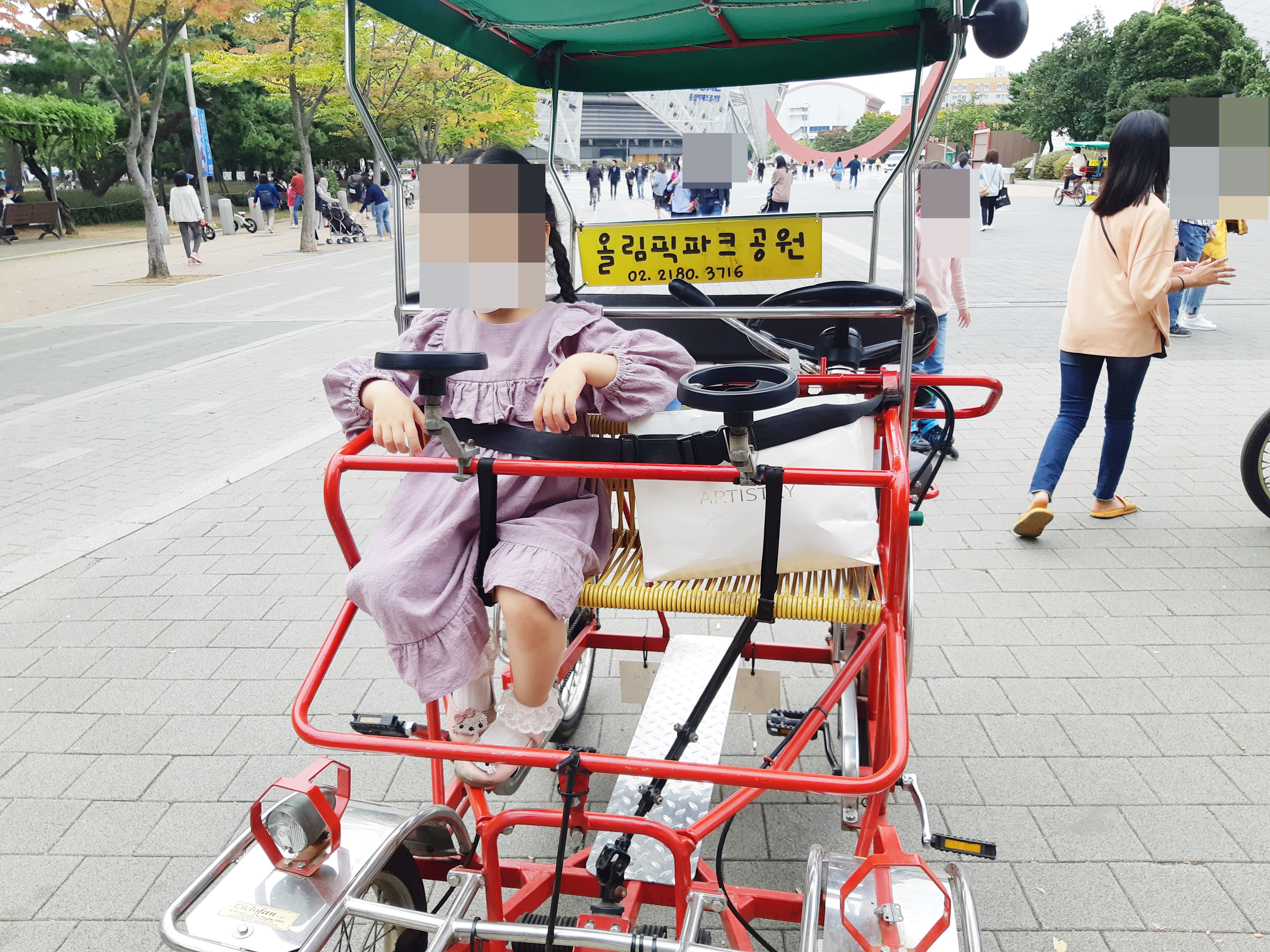 요즘같이 날씨 좋을때 올림픽공원에 자전거 딜레이는 기본인듯 합니다. 딜레이가 너무 심해서 매표를 다 확인하고 받으니 참고하시구요. 각 인승마다 요금입니다. 30분이면 올림픽공원 딱 한바퀴 코스 되더라구요. 타보닌깐 1시간동안 계속해서 돌리기는 힘들었습니다. 아이와 타협이 된다면 30분 권해드립니다.