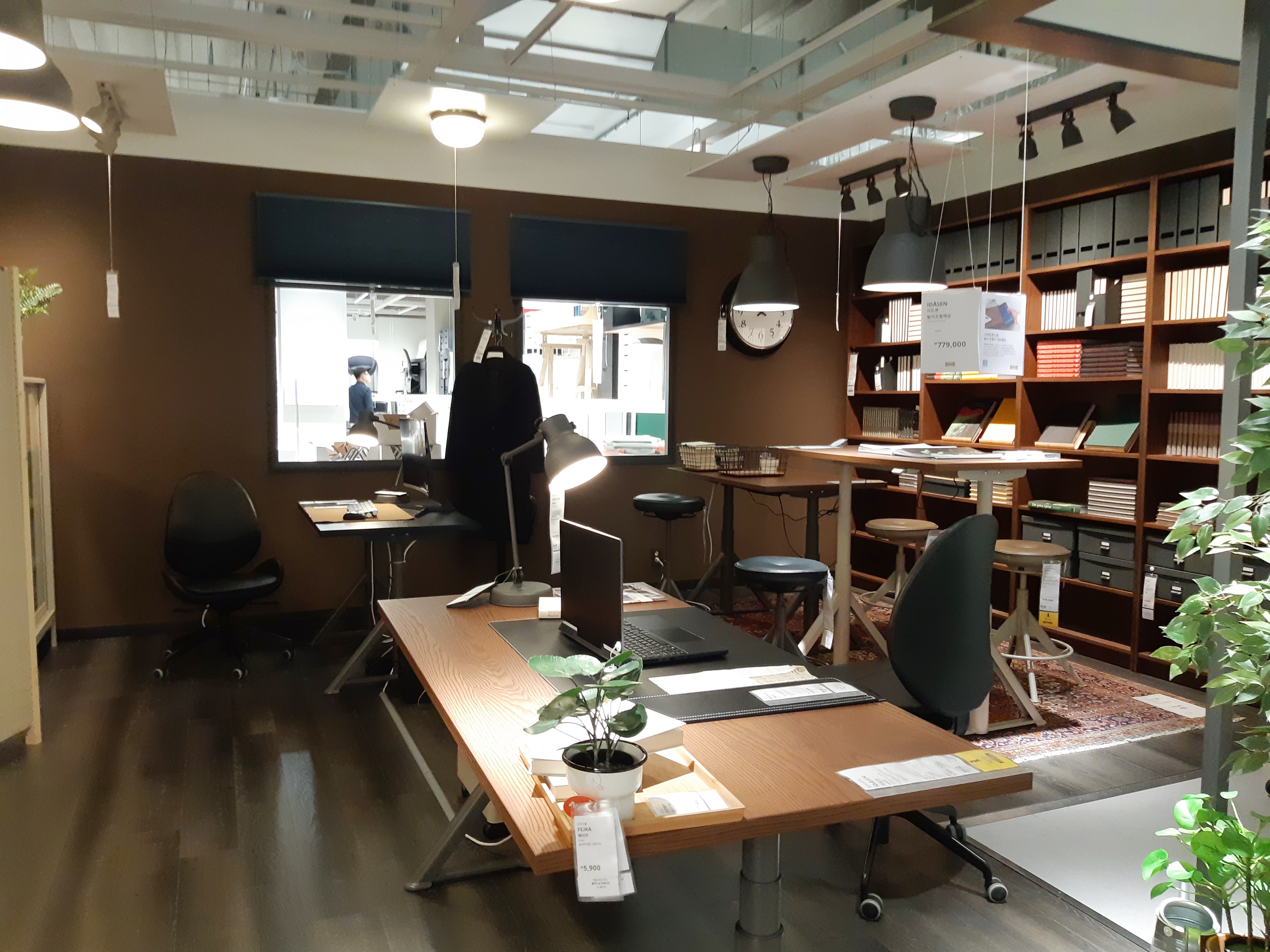 높낮이가 버튼으로 조정이 되는 책상들이었고 약간 중후한 멋이 있는 스타일에 서재와