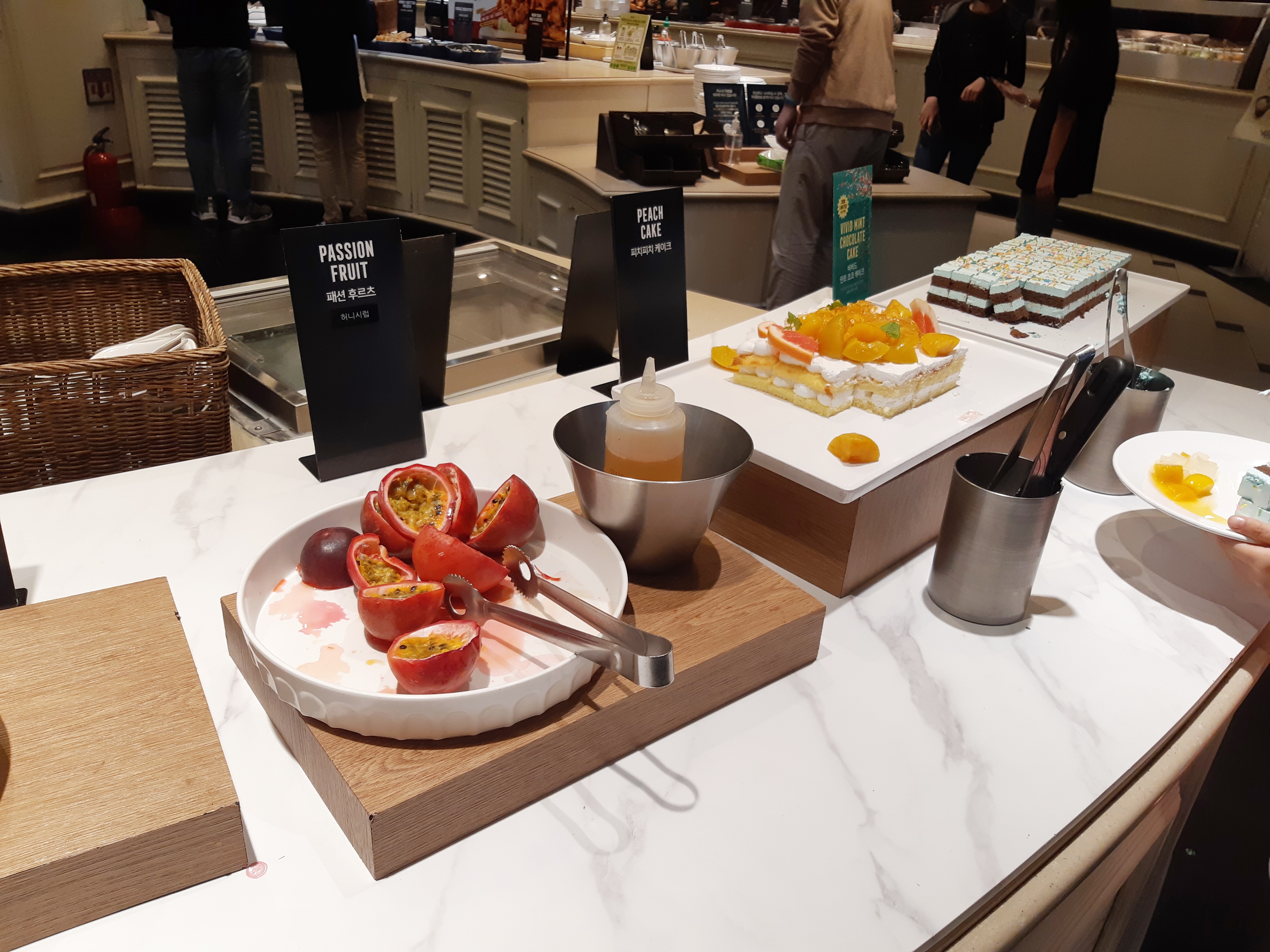 밑에 샐러드 황도 열대과일 등등 맛있는게 많답니다.