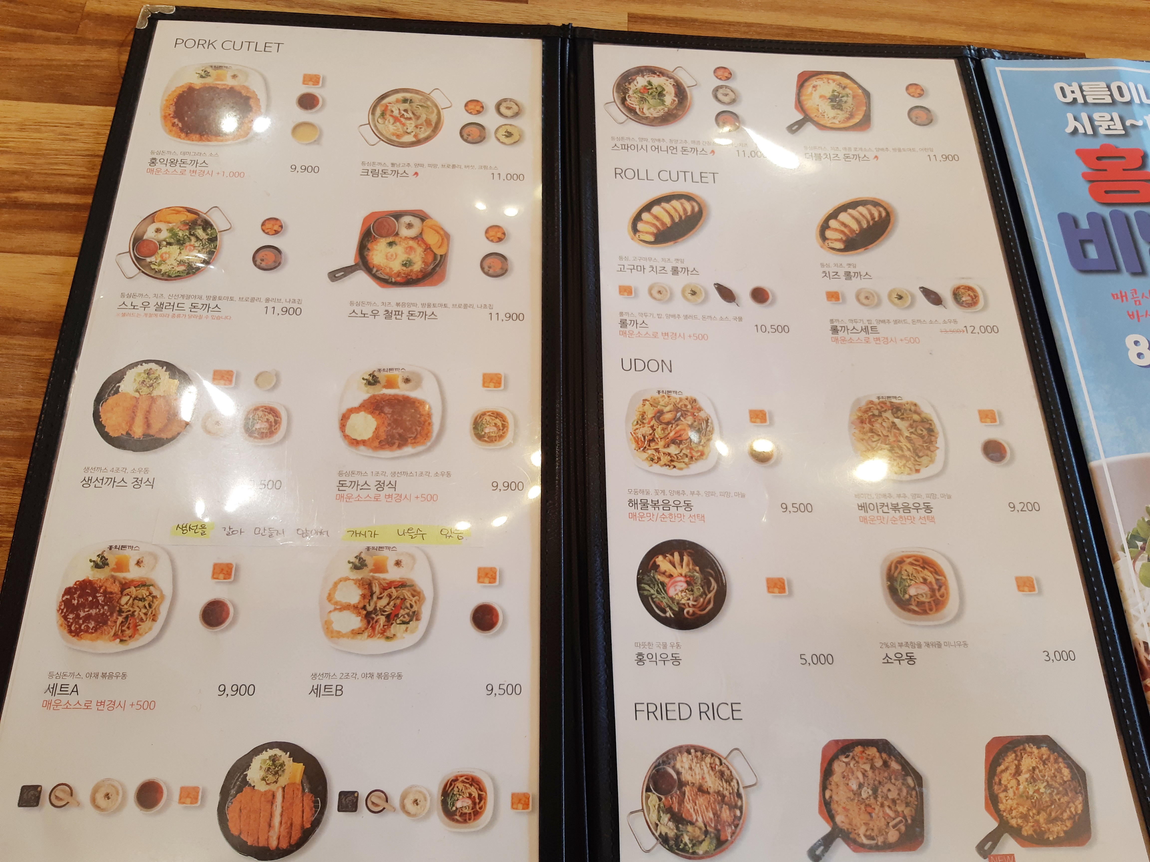 메뉴는 돈까스 메뉴 볶음우동 메뉴 파스타 메뉴 다양하게 있었습니다.